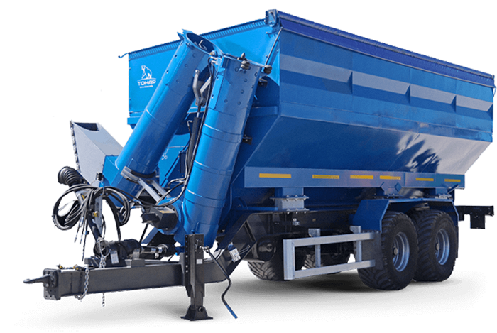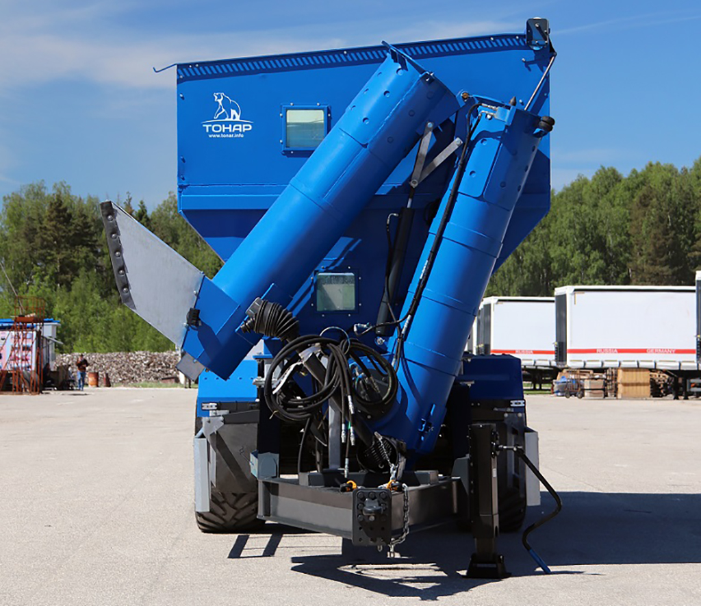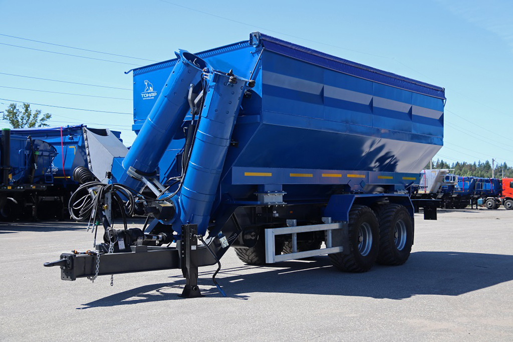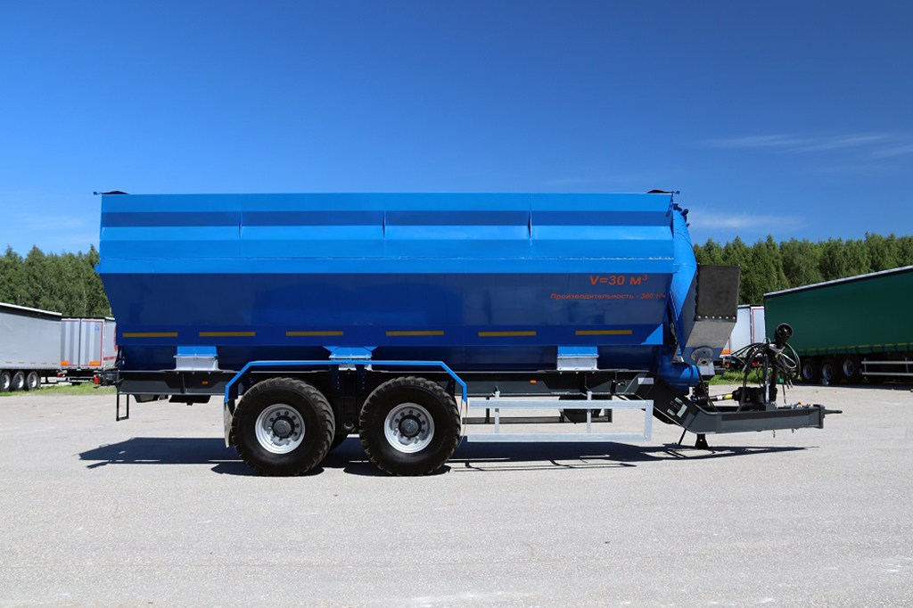 Бункер-перегрузчик зерна. Объём кузова 22 куб.м. Оборудован системой зачистных лючков, тентом с боковой скруткой, системой гидравлических заслонок горизонтального шнека, съемными надставными бортами для удобства транспортировки на трале.