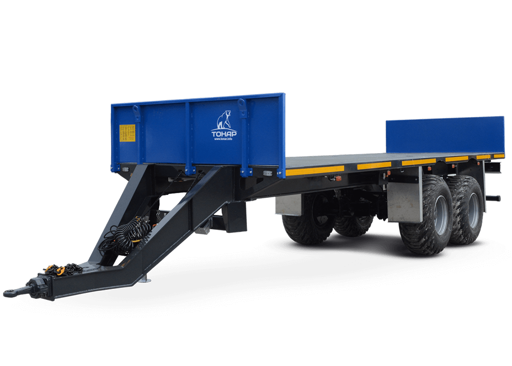 Тракторный прицеп с длиной платформы 7500 мм, предназначен для перевозки овощных контейнеров и цилиндрических тюков сена (соломы).