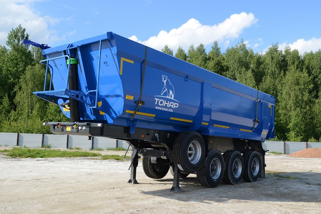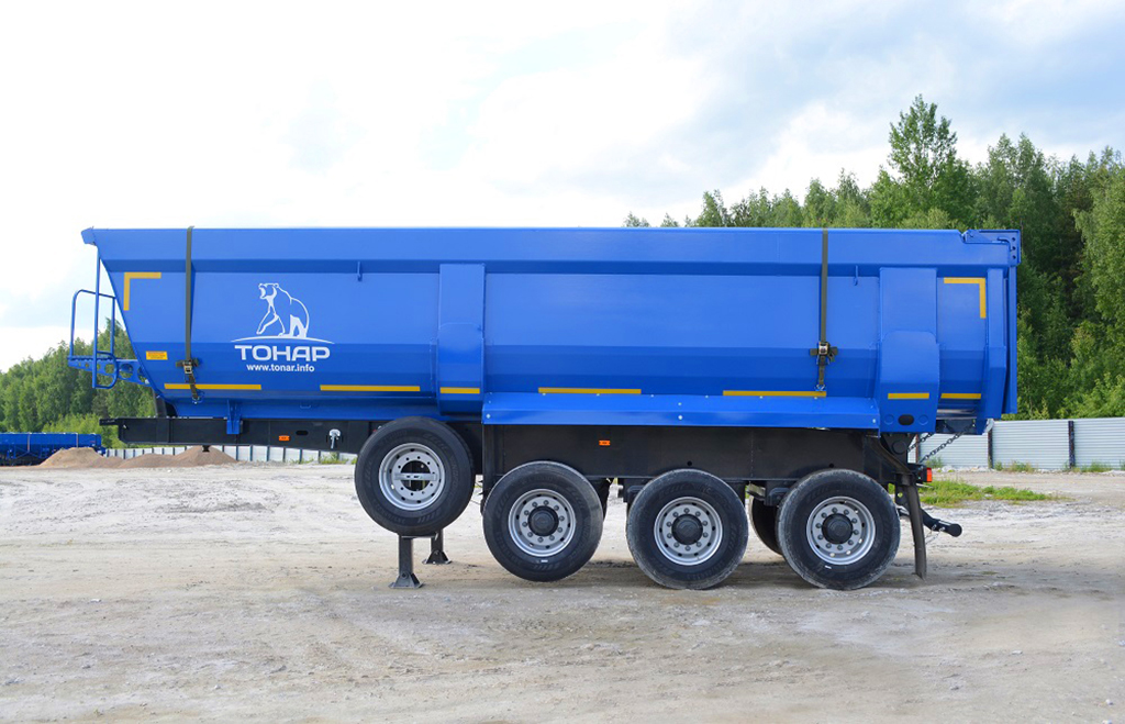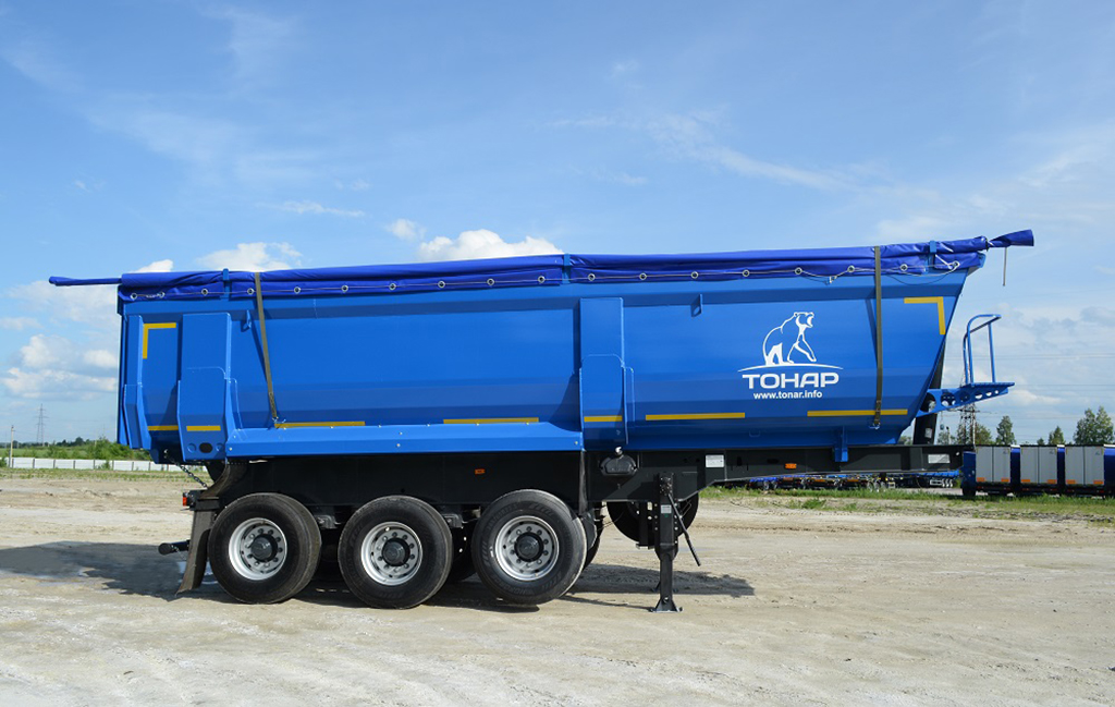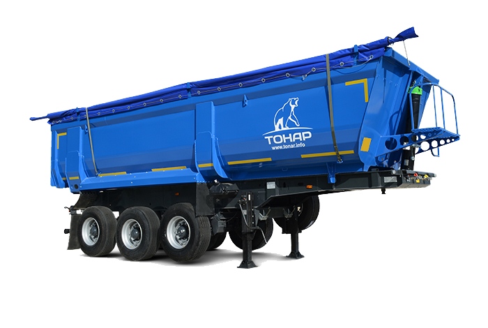 3-х осный самосвальный полуприцеп с традиционной разгрузкой “назад”. Объём кузова 29,4 куб.м. Автоматический механизм запирания заднего борта.
