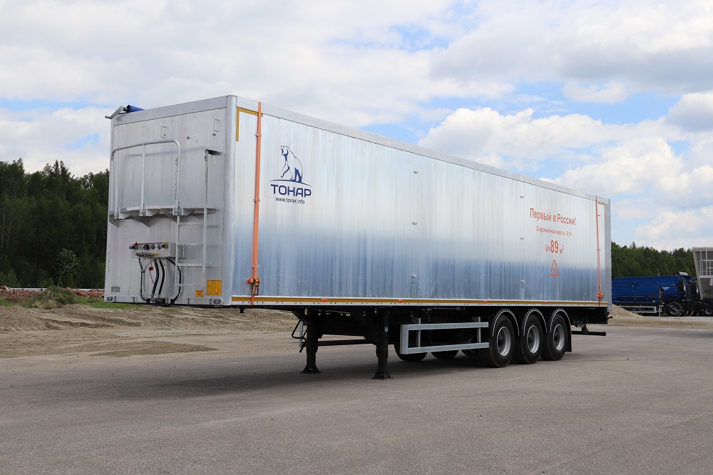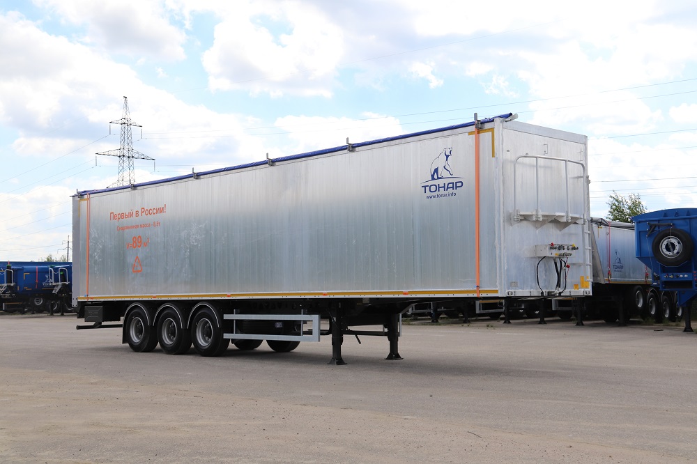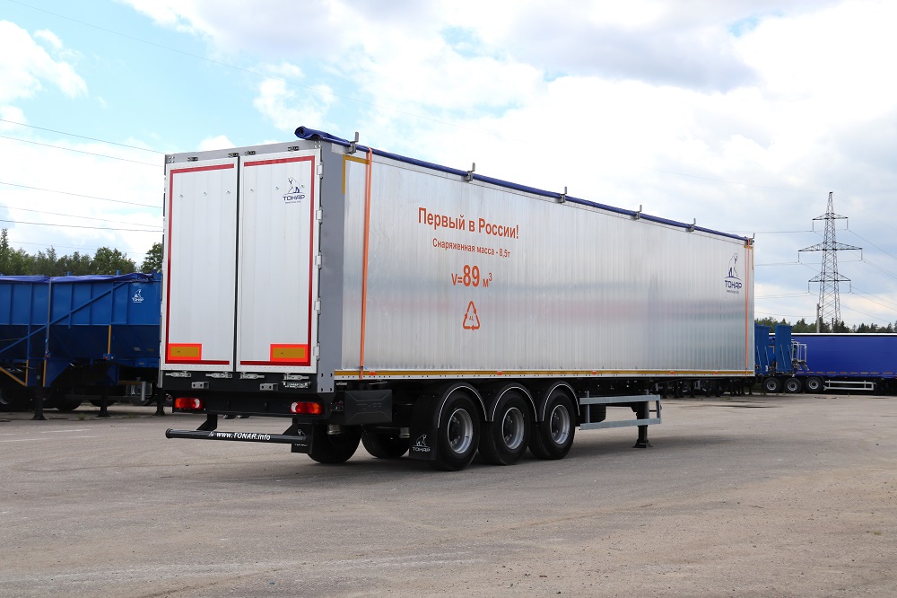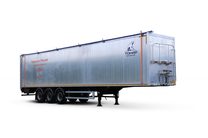 Полуприцеп со сдвижными полами алюминиевым кузовом. Объём кузова 89 куб. м.