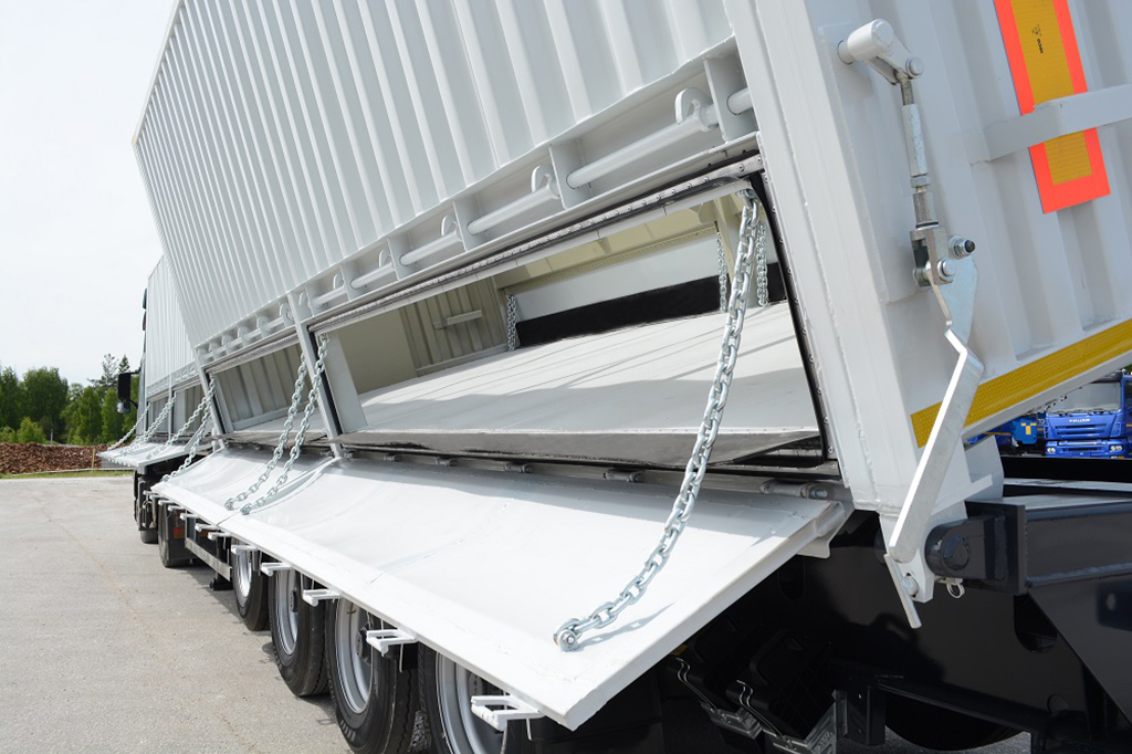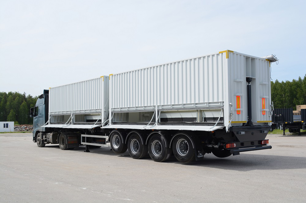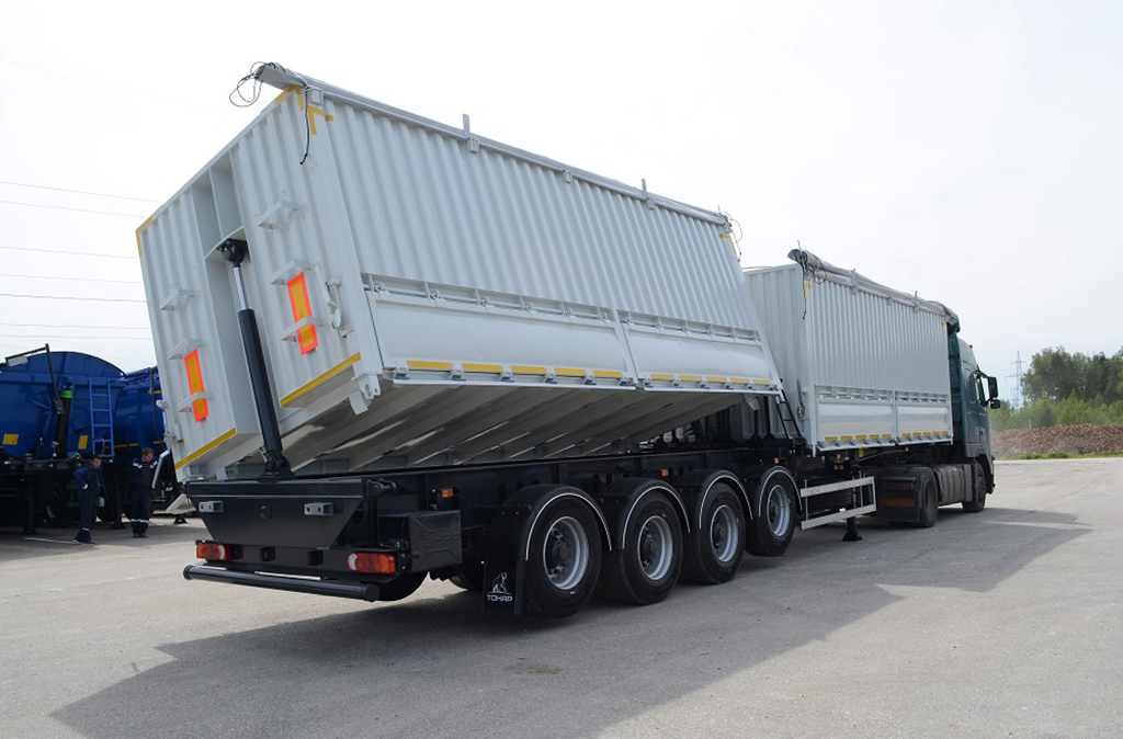 Двухсекционный самосвальный полуприцеп-семечковоз с объемом кузова 68 куб.м.