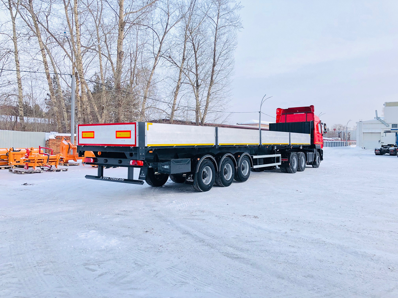 Отгружен бортовой полуприцеп Тонар B3-13/K в обновленном исполнении с алюминиевыми бортами, в базовой комплектации полуприцеп укомплектован стаканами под коники в количестве 22 шт.
