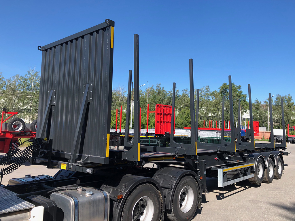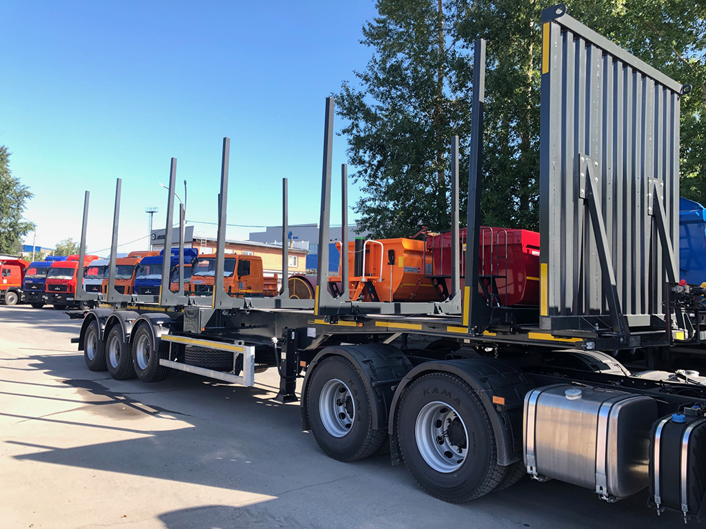 Отгрузка полуприцепа-сортиментовоза для перевозки длинномерных грузов.